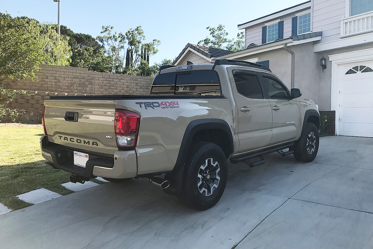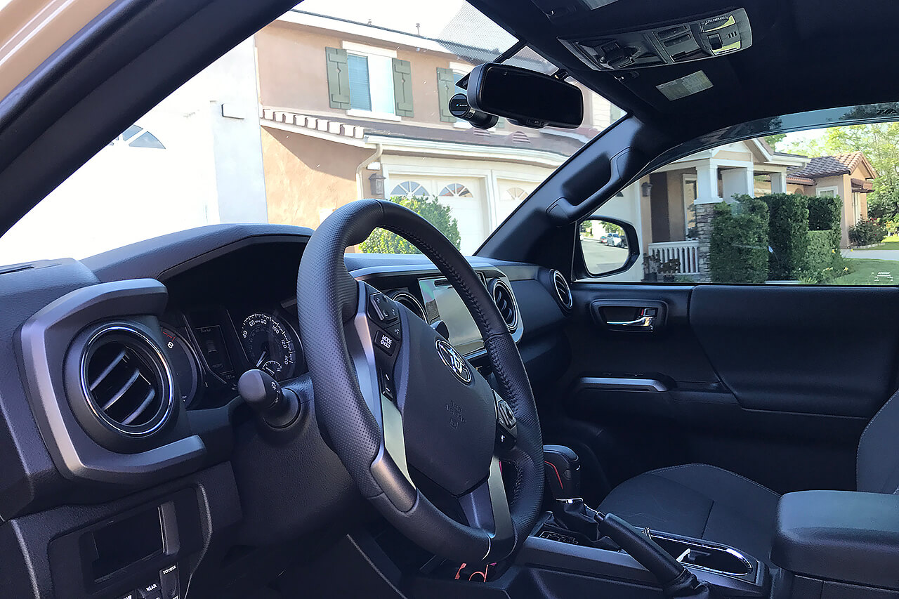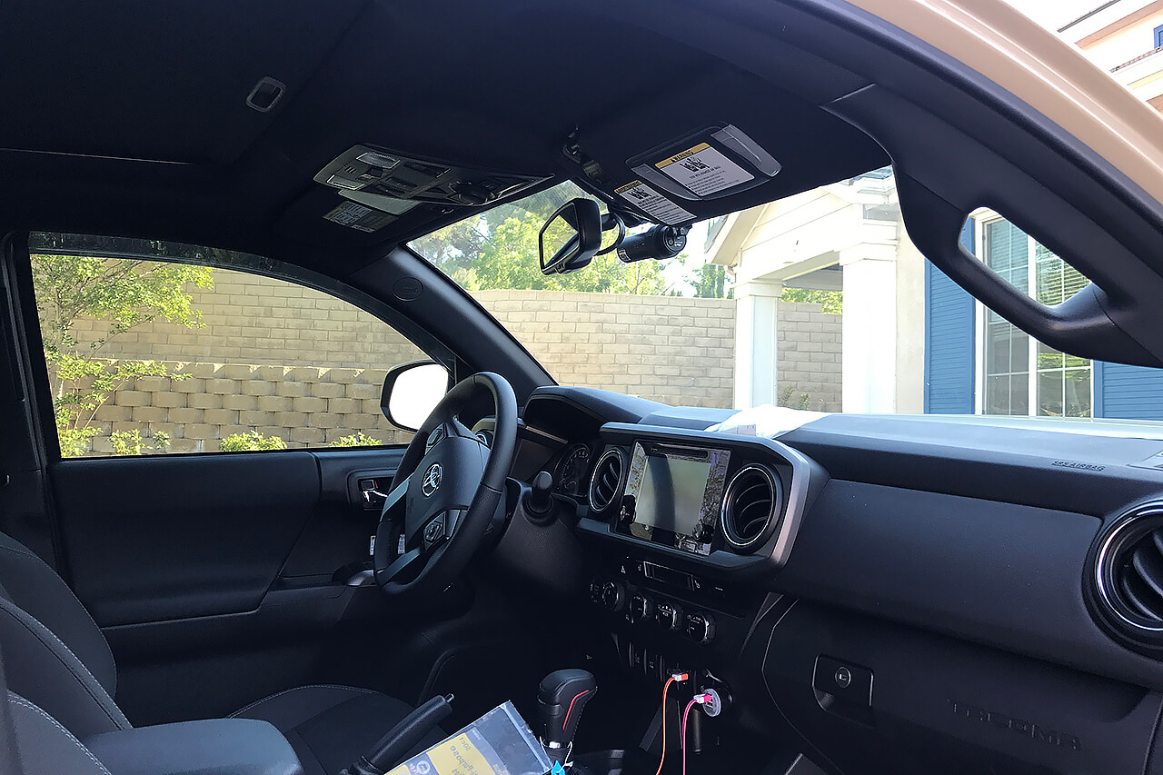 BlackVue DR650S-2CH + BlackVue Power Magic Pro + BlackVue Coaxial Cable 33' (10m) + Rear Camera Mount Extender installed on 2017 Toyota Tacoma TRD Off Road 4x4